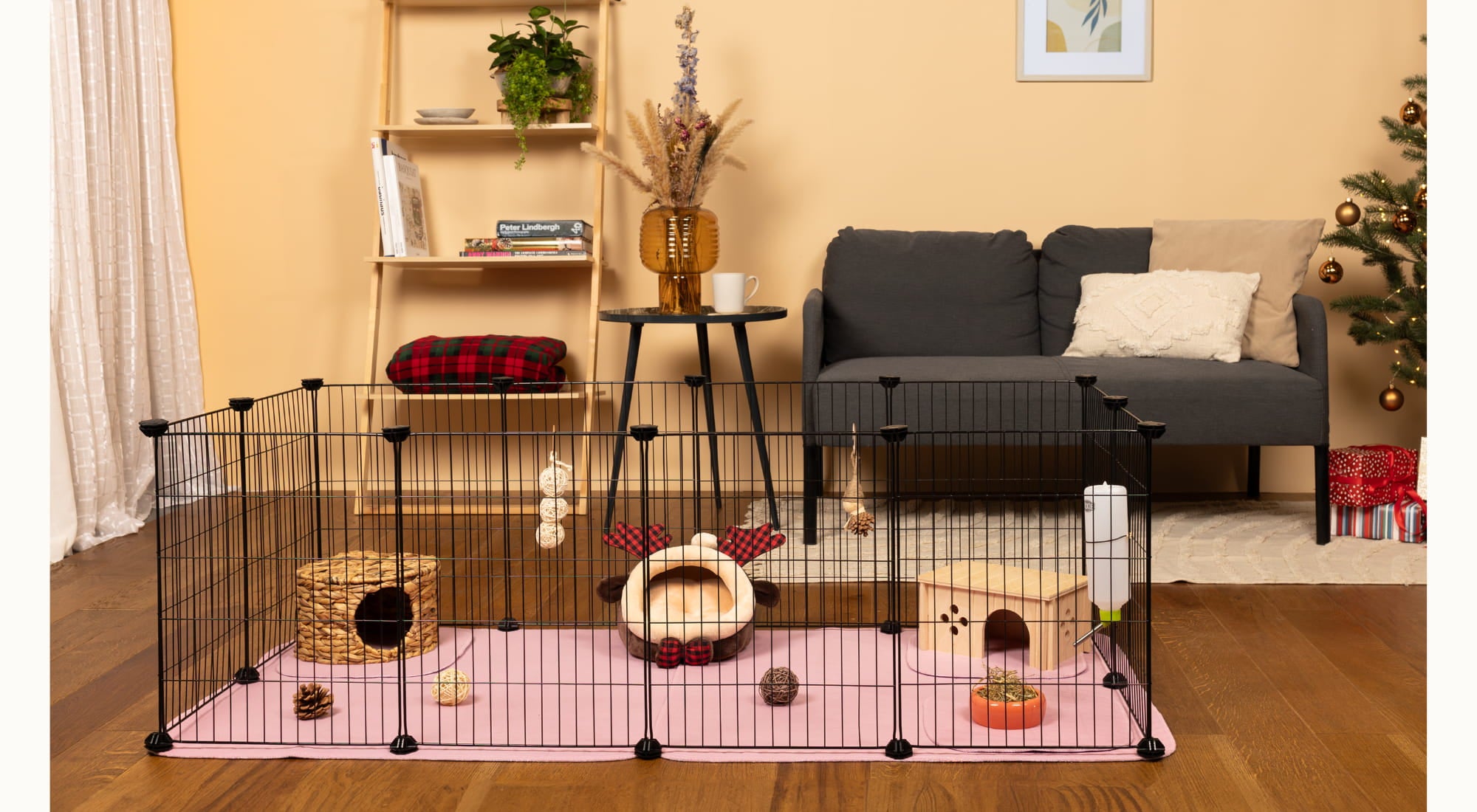 - Gebruik de Pee Pads waar je cavia's hun meeste tijd doorbrengen: onder de huisjes, brug, tunnel, drinkflesje, hooiruif, etc.